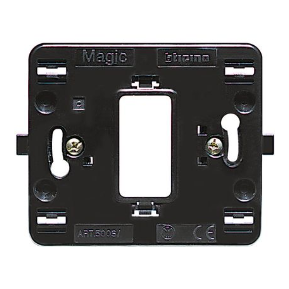 Realizzato in materiale robusto, il supporto 500S/1 è progettato per una facile installazione e per assicurare la compatibilità con le placche della stessa serie, completando l'impianto elettrico con la qualità e l'affidabilità tipiche di Bticino.